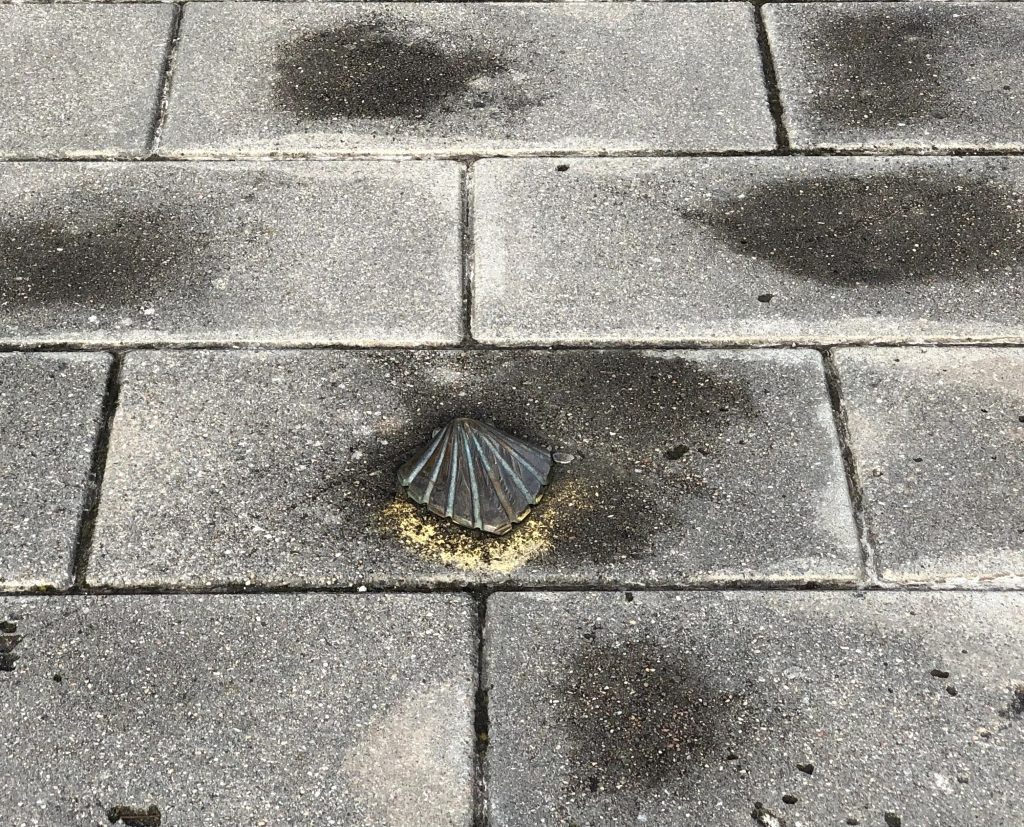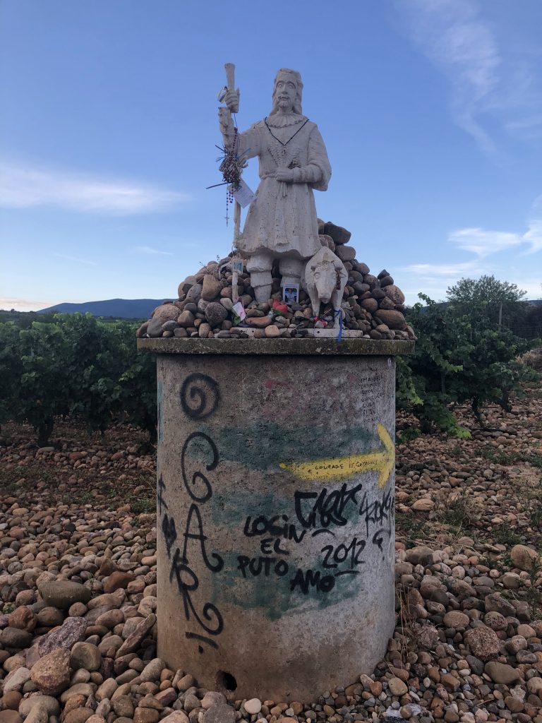 This bronze sculpture “Be Welcoming” by Canadian sculptor Timothy Schmalz, installed in 2023, is of a pilgrim who becomes an angel – a symbol urging hospitality to walkers on the Camino (Perhaps a reminder to stop if you get sick! 😉