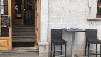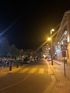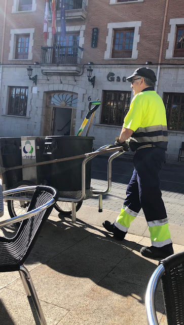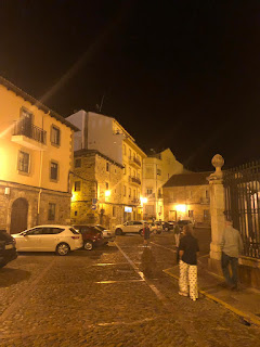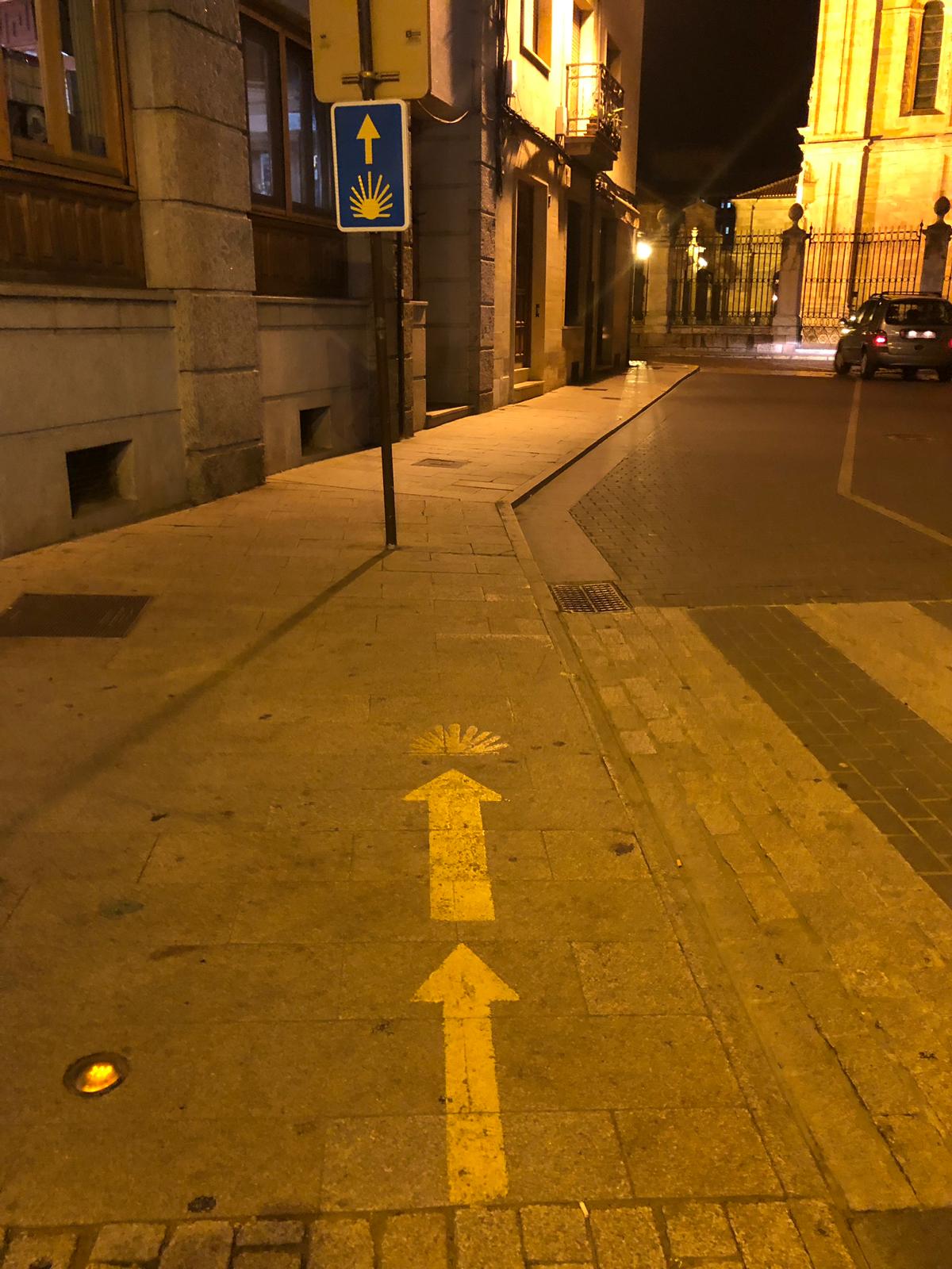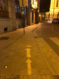 September 30 Astorga Sitting outside the restaurant watching pilgrims head out.