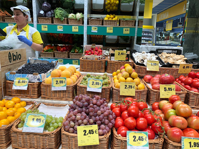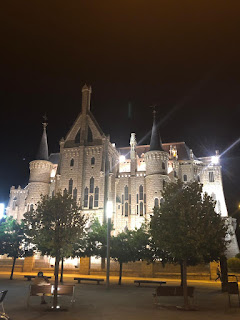 Rest day in Astorga. I didn’t see anything I wanted for breakfast, so went to the Super Mercado. Notice the grocery carts. Those are the large ones. People buy what they can carry home. The lady behind the fruit and vegetable area weighs and bags your purchase. There are other options for bagging yourself, but there is some process I didn’t understand. I just wanted two nectarines…
