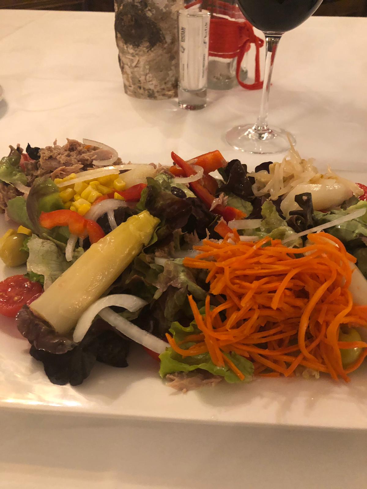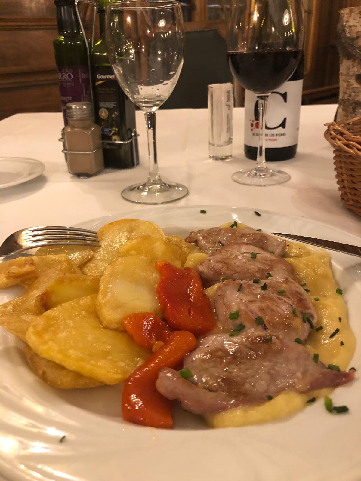 The meal was one of the best on this Camino, including a fresh salad, pork tenderloin medallion, potato, peppers…