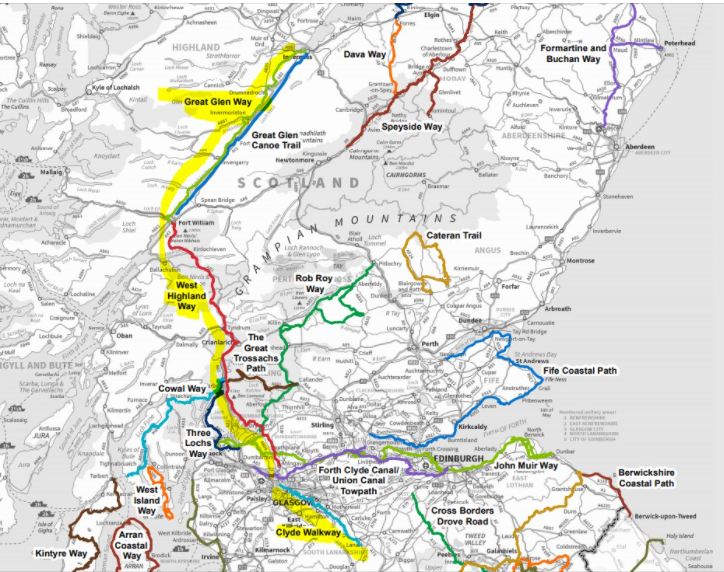 Exploring Scotland’s Great Trails. Looking at three that connect, south to north: Clyde Walkway, West Highland Way, Great Glen Way. Total 344 km/ 215 miles. I’d go slow with a rest day between each trail, so would probably be about 23 days. At least one region along the Camino Frances in Spain is closed until May. That means all those with spring plans will show up in the fall when I had planned. I’m thinking it will be an accommodation nightmare, so I’m looking at 2021 alternatives. The map is taken from a Scotland Great Trails map.