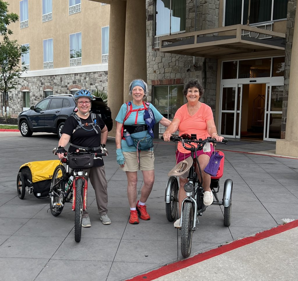 Tres Peregrinas on the San Antonio Pilgrimage Mendy, Mary, and Marie! Off we go! And… not in the photo, our other peregrina, Andrea, who drove nearly two hours to send us off and who walked with us in spirit!