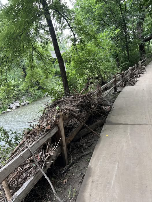 Two nights ago there were areas around Kansas City that received close to 10″ of rain. Today, at the Tomahawk Creek trail, I saw where the creek had risen an unbelievable amount. The trail was closed yesterday, I could see why!