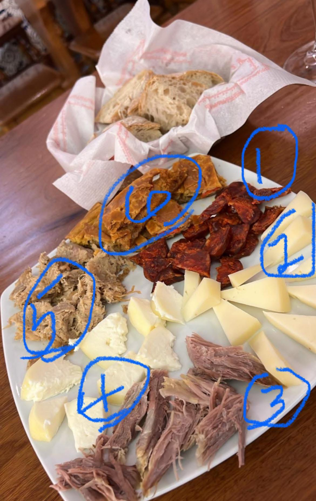 This is a plate of common Galician meal items. Notice the numbers on each item. I’ve explained them by number.