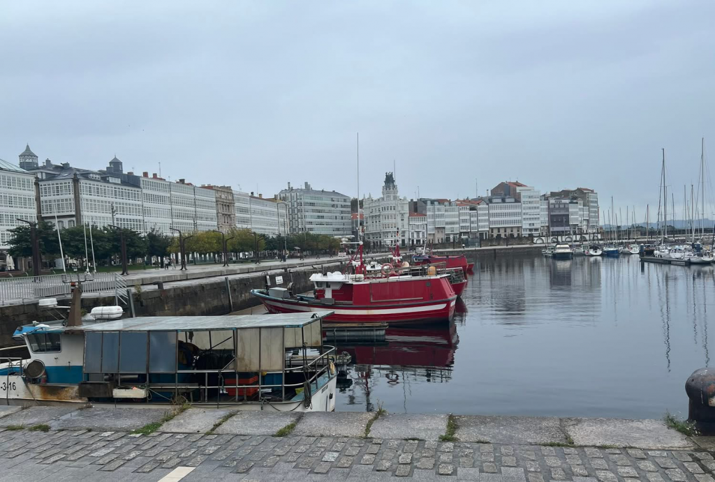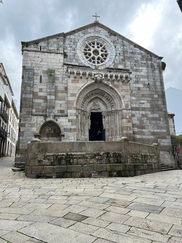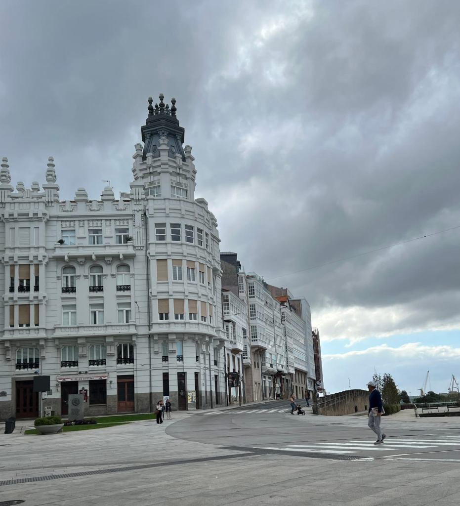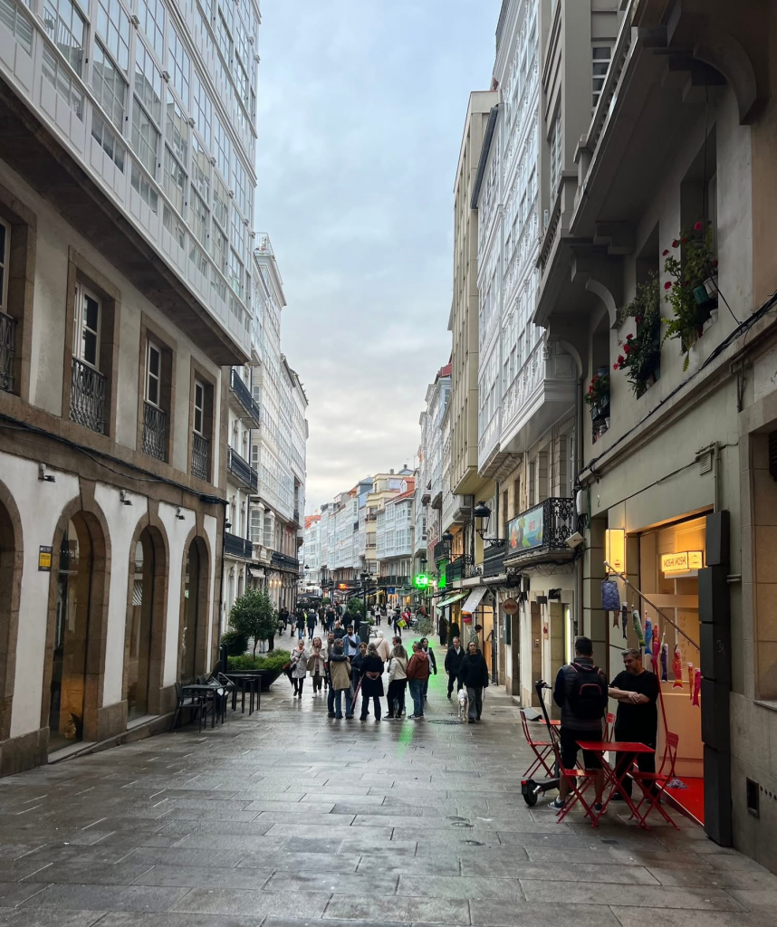 The official start of the Camino Inglés is at the Igrexa de Santiago (built in the 12th century). The first official Km marker is around to the left side of the church on the Rúa Santiago. A Coruña.The sign says Heladería Artesana (Artisan Ice cream parlor). Pretty sure the entire building wasn’t for ice cream.Busy A Coruña streets. A major tourist destination – ginormous cruise ships in the harbor. Very few pilgrims.A Coruña. Plaza in Old Town. Plaza de Maria Pita.A Coruña. I missed a photo op with this fellow.A Coruña harbor.