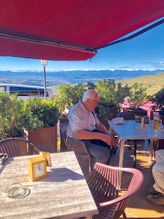I wanted to walk the road instead of the rocky path. Since I can’t connect to Google maps, I asked the driver of the Swiss tourist bus that pulled into the fancy place here. Another man, who is in charge, said that was the road but some areas were extremely steep. If I wanted to wait 30 minutes, they would give me a ride in the bus. I’m always hitching rides!