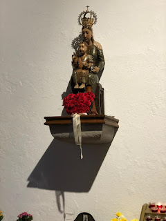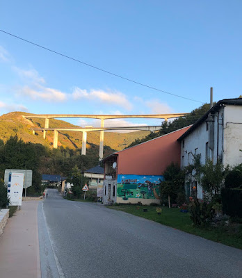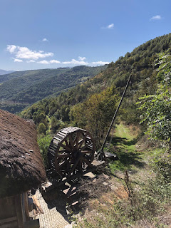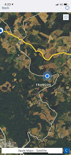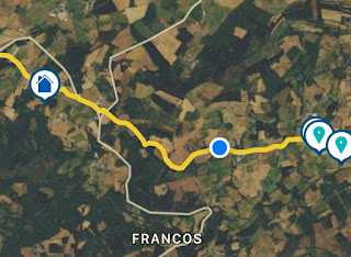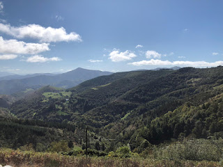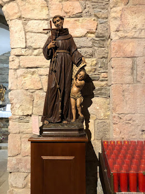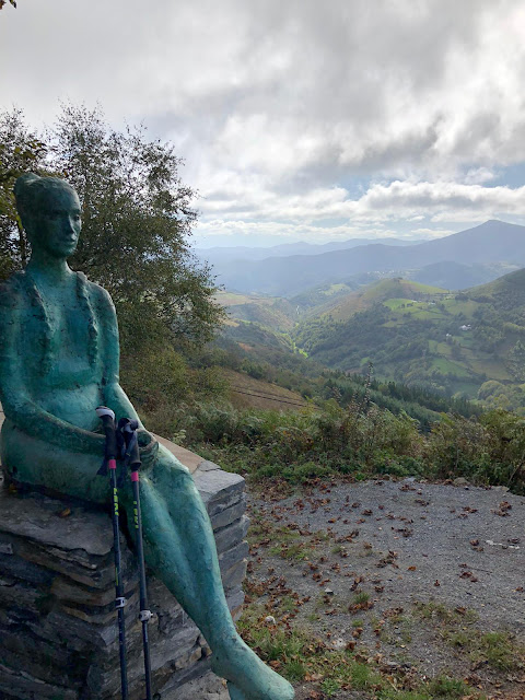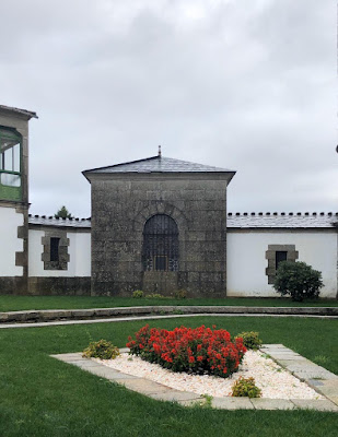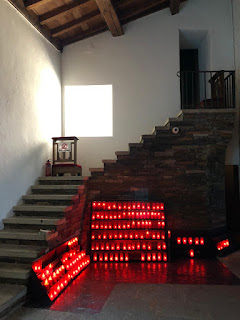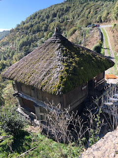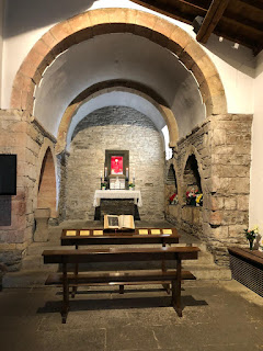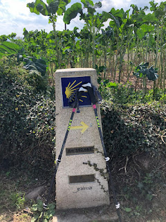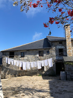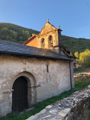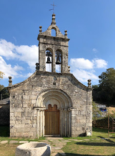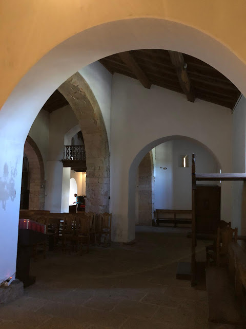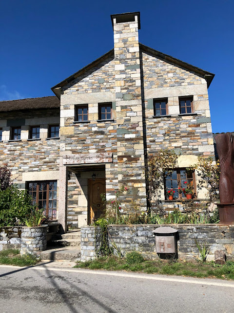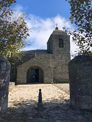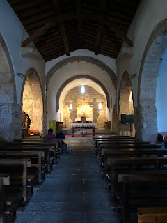 Church of Santiago de Alba. Chatted with the priest a bit. Asked him if he got tired of listening to the music coming through the speakers. He thought that was a hoot. Yes!! Then swirled his finger around his head and said it is stuck in his head day and night! He was there to stamp the pilgrim passports.