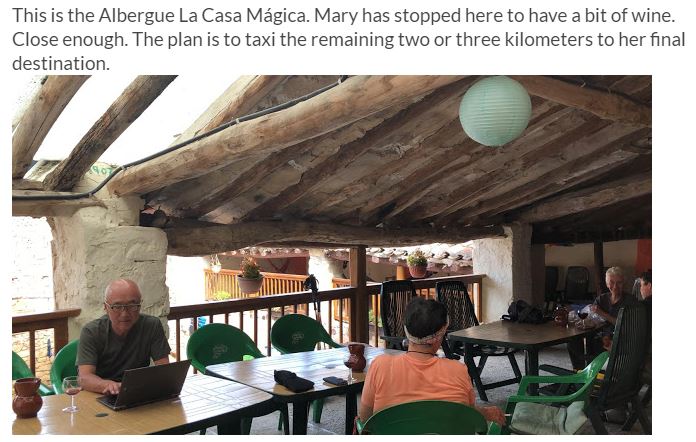 I’ve had a crazy day created by a series of bad decisions on my part. Leaving Puenta del Reina, I sat on a bench right before the bridge and updated my blogs because I was too tired last night. Consequently, I didn’t cross the bridge until 1000. Then stopped for breakfast at the first village and carried on. I got very hot. Had water, but nothing with electrolytes and no snacks. Was walking very slow and hot and nauseous. Stopped in Lorca to taxi to the town before Estella but the whole town is closed per Covid. Learned this after waiting over an hour thinking things were closed midday. Walked on to Villatuera. Only 4km to Estella, which I could do, but was too late in the day. So took a taxi for the last four km to Estella.