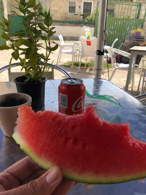 The journey began by leaving town over the Rio Carrión. The building below the picture of the bridge is the Hotel Monasterio San Zoilo, a complex including (from their website):