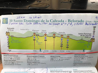 “I had to wait until I was in a village where I could use WiFi to recharge the card. I left Abelard this morning, walked about 8 miles through four villages and am now in the fourth one, Villafranca Montes de Oca. My knee is hurting and there’s a big hill and a 4-5 hour walk to the next village, so decided to call this a short day. Just 8 miles which is about halfway from my original plan. All is well. It’s just getting time for a rest day which happens soon.”